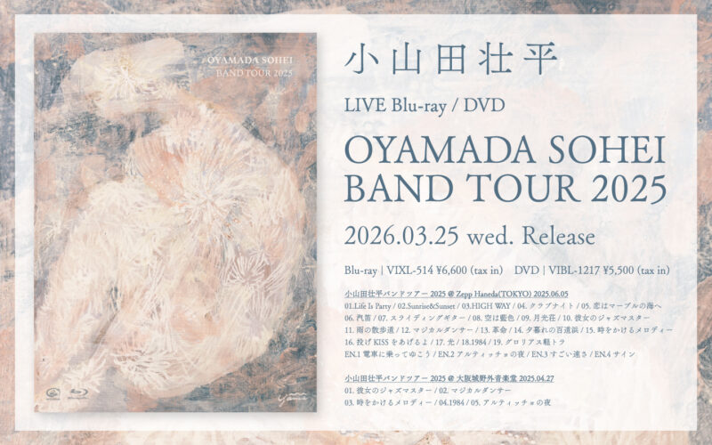 3/25発売の映像作品「OYAMADA SOHEI BAND TOUR 2025」のトレーラー映像がYoutubeで公開されました。 – OYAMADA SOHEI BAND TOUR 2025 (Official Trailer) 映像はこちらから➡︎https://youtu.be/-aAQwoB6zdE